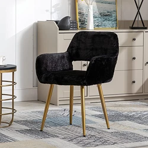 - 💕【Sturdy and Durable 】The Faux Fur Accent Chair designed with sturdy metal legs with wood grain, which is unique on look, but also strong enough to hold 250lbs