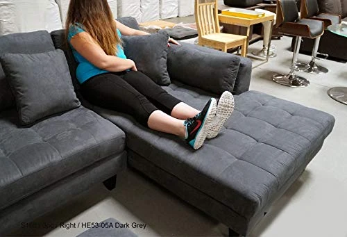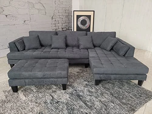 - Set includes: Sofa + Chaise + Ottoman in a dark gray microfiber fabric finish. The sofa set can be set up as a Queen-size bed (Please see photos)