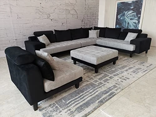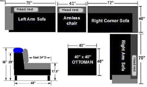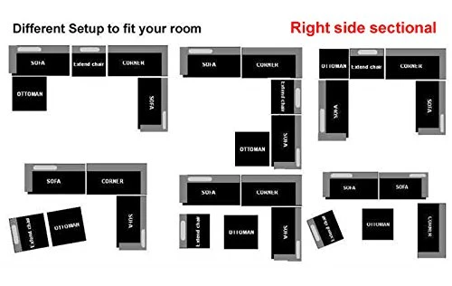 - Price includes: Left Sofa + Right Corner Sofa + Right Sofa + Armless chair + Ottoman and 13 pillows (8 back resting pillows and 5 small accent pillows)(Configuration as shown in the photo).