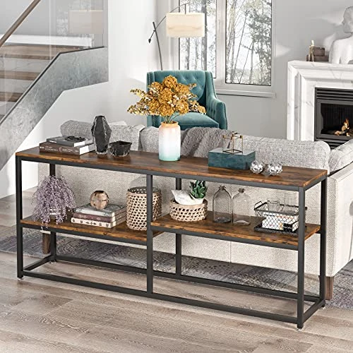 - [Extra Long Console Table]: A 70.8” long tabletop offers plenty of room to display knick-knacks, a scented candle, and decor pieces, while 2-tier shelves provide extra space for storing books, boxes, and other miscellaneous items.