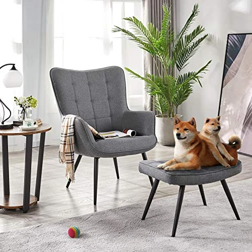 Topeakmart Accent Chair With Ottoman Set Upholstered Living Room Chair Fabric Arm Chair With Foot Rest Sofa Chair And Ottoman Set For Living Room Bedroom Office Grey