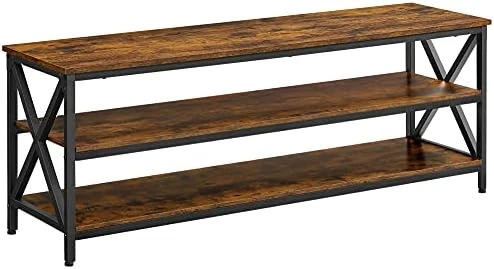- Product 1: Sturdiness Comes From…the strong particleboard and a robust X-shaped steel frame that make a solid construction for this TV table, being able to hold up 110 lb on the surface and 44 lb on each lower shelf
