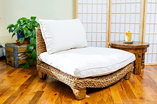 XoticBrands Seagrass Meditation Yoga Chair – Natural With Cream Cushion